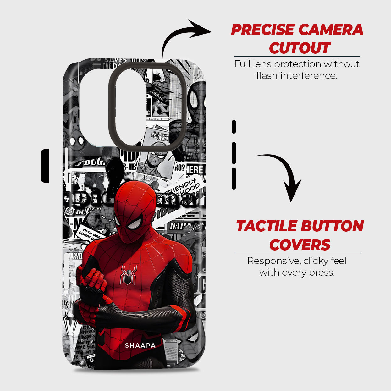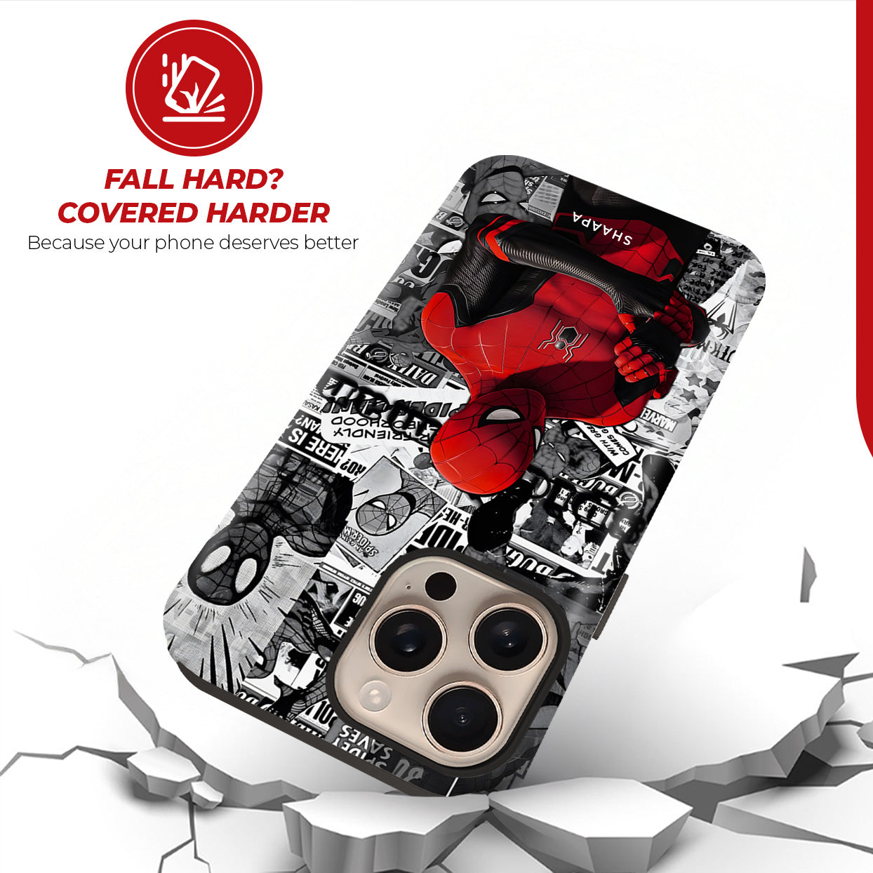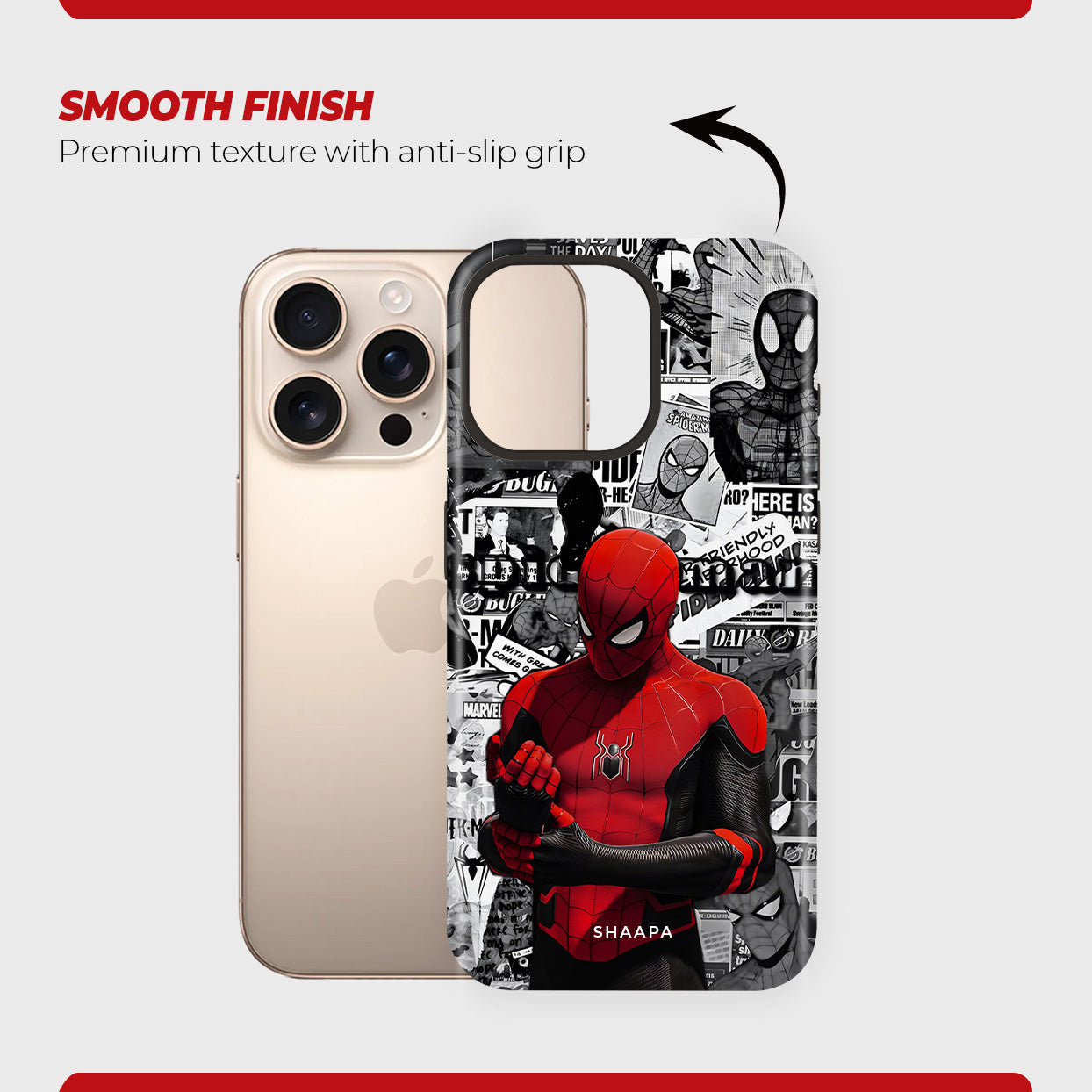 A vibrant comic-inspired Spider-Man design that merges classic and modern elements. With detailed panels and a striking red-suited Spidey at the center, this case is pure nostalgia for Marvel lovers.